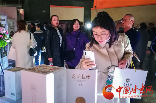 與會嘉賓為花開敦煌產(chǎn)品拍照