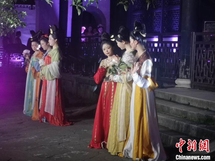 中新網(wǎng)杭州6月9日電(童笑雨)實(shí)景園林中還原杜麗娘游園驚夢場景,羅漢堂前身著傳統(tǒng)服飾的年輕人坐在蒲團(tuán)上行飛花令,曼妙身姿在假山上演繹《采薇》獨(dú)舞……這是專屬于浙江省博物館的“奇妙夜”。
