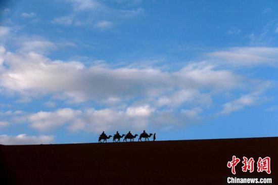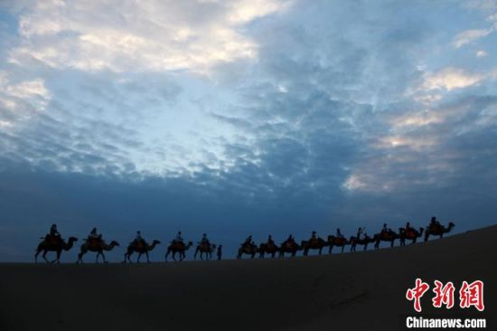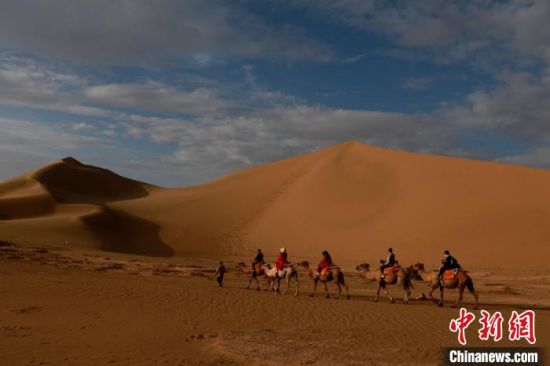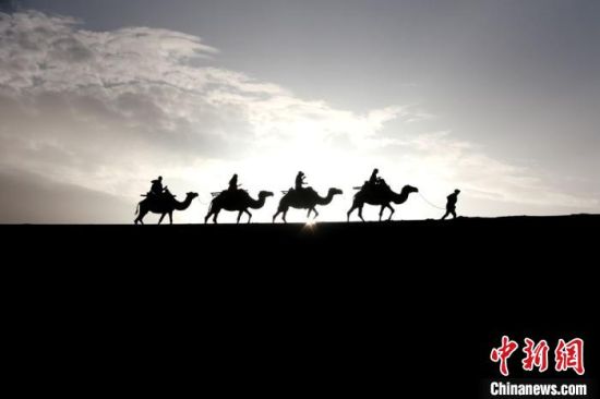 圖為敦煌大漠晨光引客“畫中游”?!垥粤?nbsp;攝