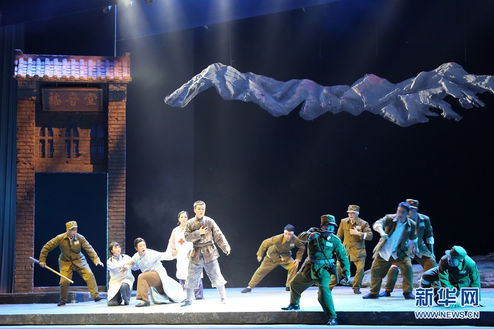 5月30日晚,大型秦腔現(xiàn)代戲《肝膽祁連》在蘭州音樂廳精彩上演?!陡文懫钸B》以真實(shí)的歷史故事改編,講述了愛國(guó)民主人士高金城營(yíng)救紅西路軍戰(zhàn)士的感人故事。新華網(wǎng)發(fā)(王晶晶 攝)