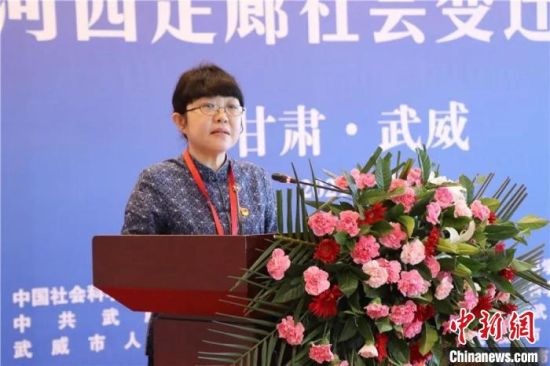 11日,“明清時(shí)期河西走廊社會變遷”學(xué)術(shù)研討會舉辦。圖為中國社科院古代史研究所黨委書記趙笑潔講話?!∥渫行侣剛髅郊瘓F(tuán)供圖