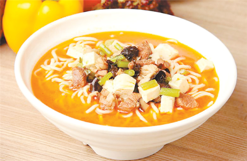 西峰的臊子面也很有地方特色,因其太辣,吃在嘴里不斷發(fā)出噓噓哨聲,故又稱“哨子面”。西峰臊子面制作獨(dú)特,吃法有趣,堪稱一絕。正如一首民歌唱到“十八省里(那個(gè))轉(zhuǎn)一遍,好不過咱們西峰的臊子面”。西峰臊子面做工精細(xì),制作分揉面、搟面、做湯、煮面幾個(gè)工序:“抻的面銀團(tuán)團(tuán),搟的面紙一般,剁的面千條線,下到鍋里蓮花轉(zhuǎn),撈到筷子上打秋千,盛到碗里賽牡丹。”做成的臊子面條長如線,細(xì)如絲,長而柔韌,細(xì)而不斷,噴香美味,別具風(fēng)味。