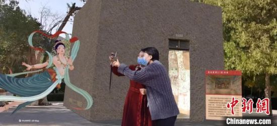 同時(shí),游客還能收獲與眾不同的“打卡照”,在景區(qū)與不同朝代的“飛天”進(jìn)行親密互動(dòng),在特殊的場景中還能與九色鹿、3D大佛等虛擬形象合影留念。