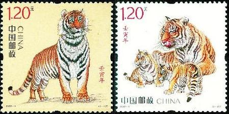 2022年是農(nóng)歷壬寅年,即“虎”年,中國(guó)郵政于1月5日發(fā)行《壬寅年》特種郵票,全套2枚。這是中國(guó)郵政發(fā)行的第四輪生肖郵票的第七套。虎年生肖郵票仍然延續(xù)了第四輪生肖郵票的“家國(guó)”理念:兩枚郵票分別展示了國(guó)家的期許、家庭的企盼,組合而成濃濃的新春祝福。