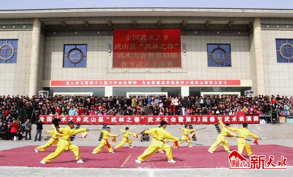 有武——武山是“全國(guó)武術(shù)之鄉(xiāng)”。全縣習(xí)武蔚然成風(fēng),有六合拳、八步轉(zhuǎn)等地方拳和國(guó)家套路、梅花槍、通備拳、硬氣功、太極拳等門類,常年習(xí)武人數(shù)達(dá)7萬(wàn)多人,每年正月舉辦全縣武林之春武術(shù)表演大會(huì)。