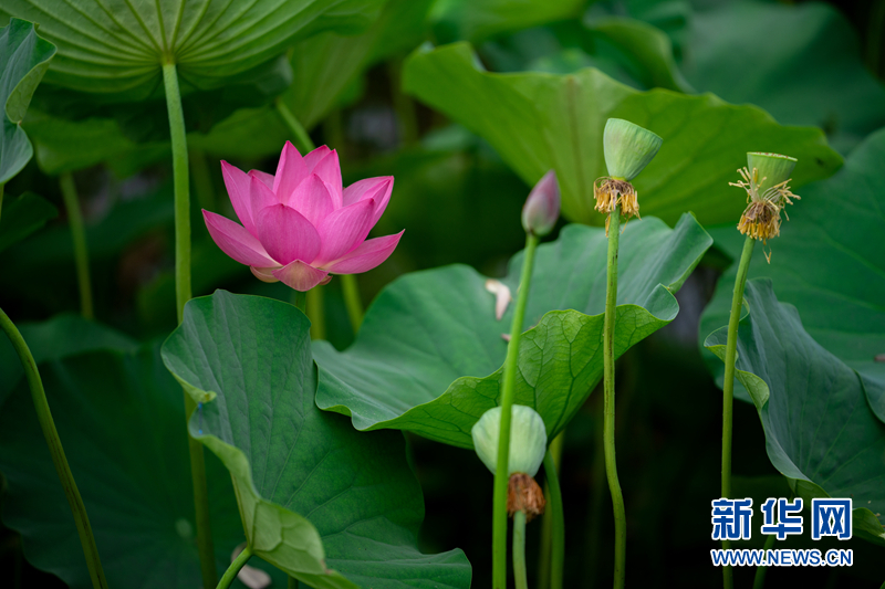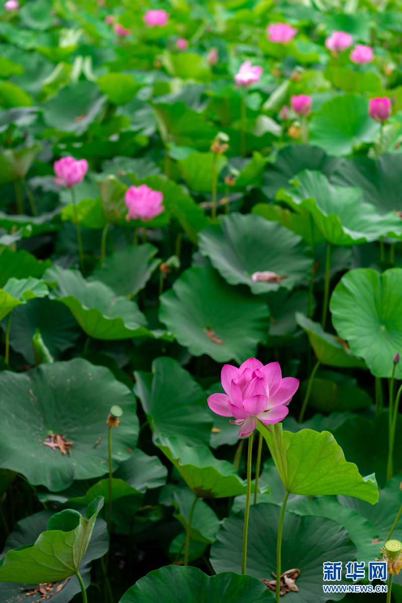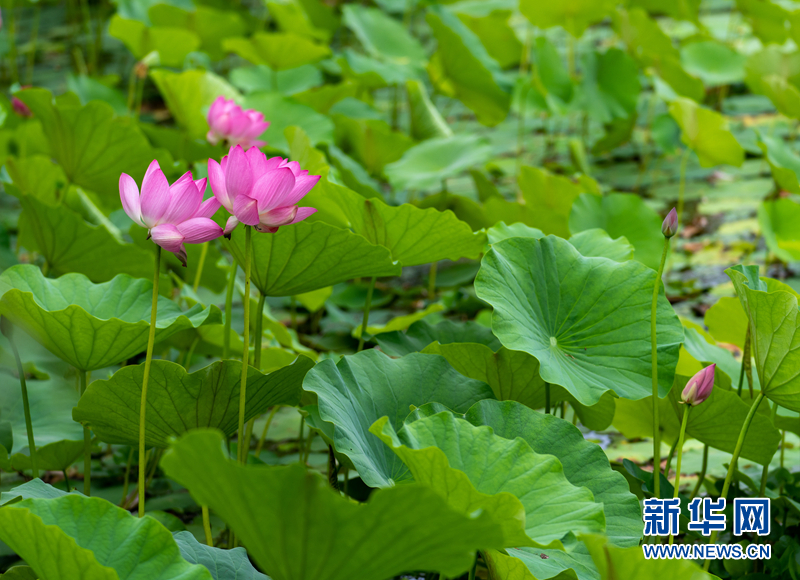 盛夏時(shí)節(jié),甘肅省隴南市成縣裴公湖里的荷花競(jìng)相綻放,在炎炎夏日中帶來一絲清涼。新華網(wǎng)發(fā)(陳爭(zhēng)強(qiáng) 攝)