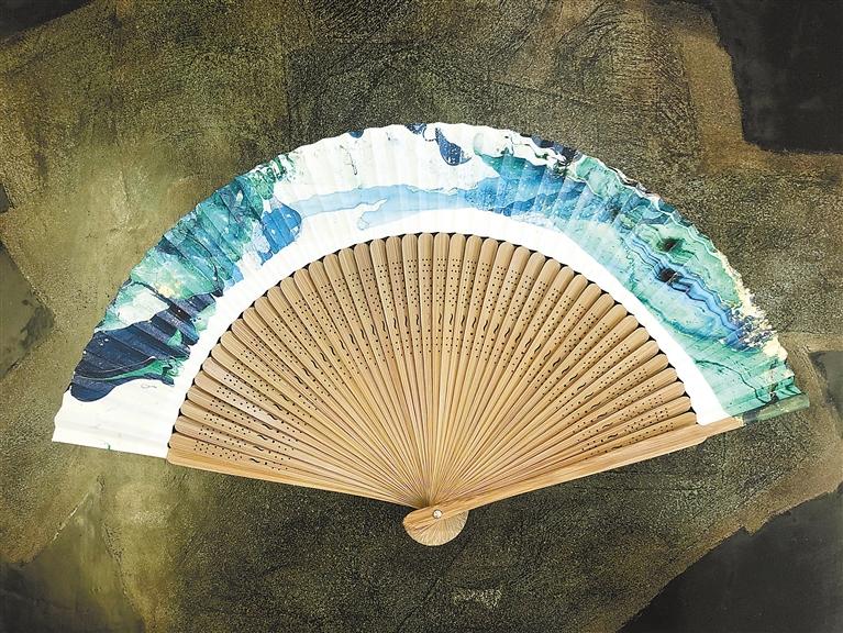 據(jù)劉志剛介紹,漆扇是使用漆藝中的“漂漆”技法,利用了漆不溶于水的特質,以點、甩、彈、劃等手法,在水面繪出圖案效果。這樣制作出的扇面,都是獨一無二的。