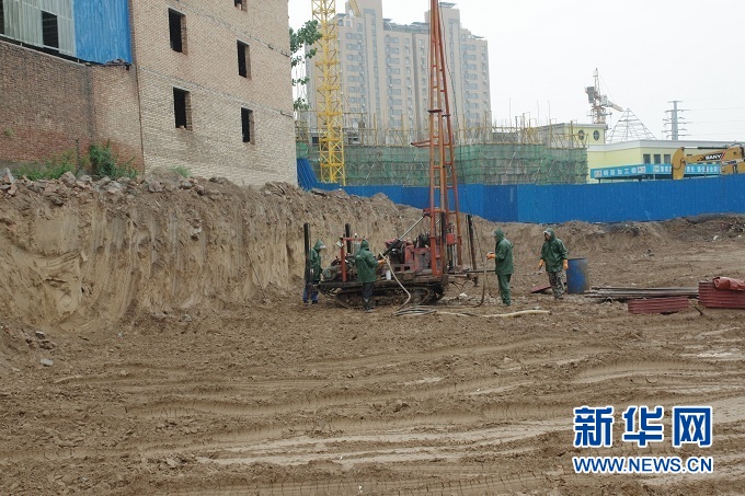 研究團(tuán)隊在三門峽盆地打鉆獲取巖芯檔案。 受訪者供圖