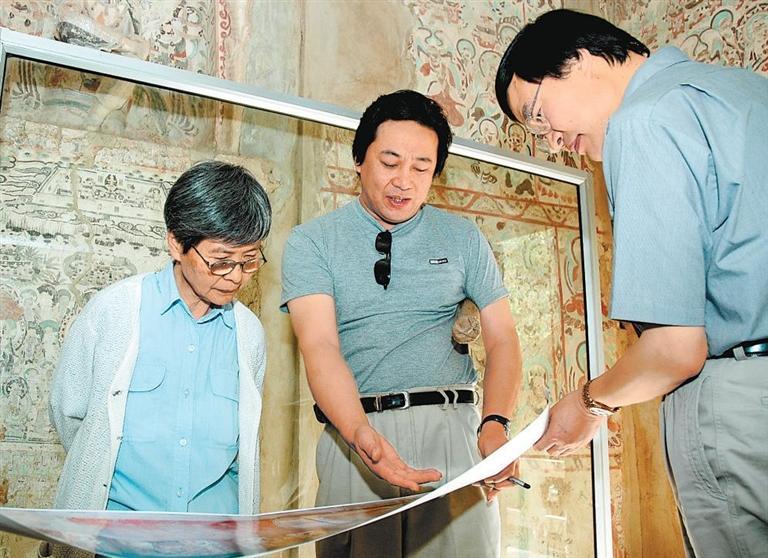 樊錦詩(shī)在莫高窟洞窟內(nèi)指導(dǎo)《敦煌石窟考古全集》的編寫工作。(資料圖)(本文圖片除署名外均由敦煌研究院提供)
