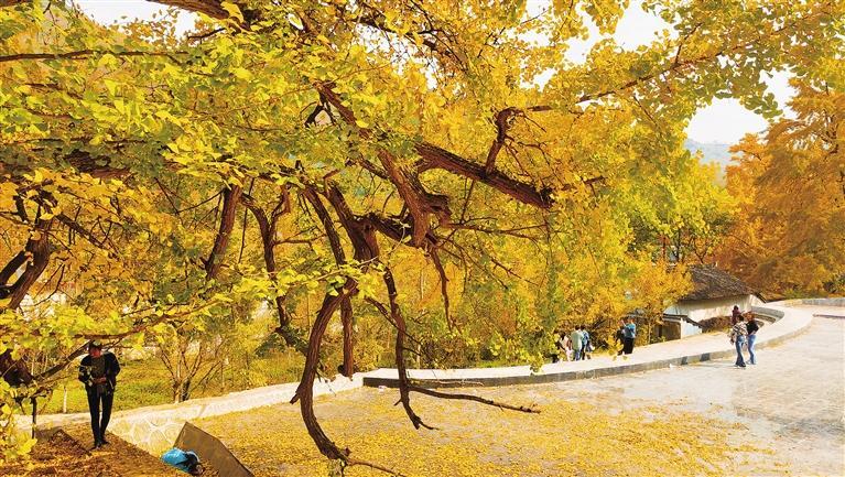 金秋時節(jié),隴南徽縣各地的銀杏樹葉逐漸變黃,落地的銀杏葉宛如一塊“金黃地毯”,勾勒出一幅幅圖畫般的迷人勝景,吸引眾多游客前來拍照打卡。