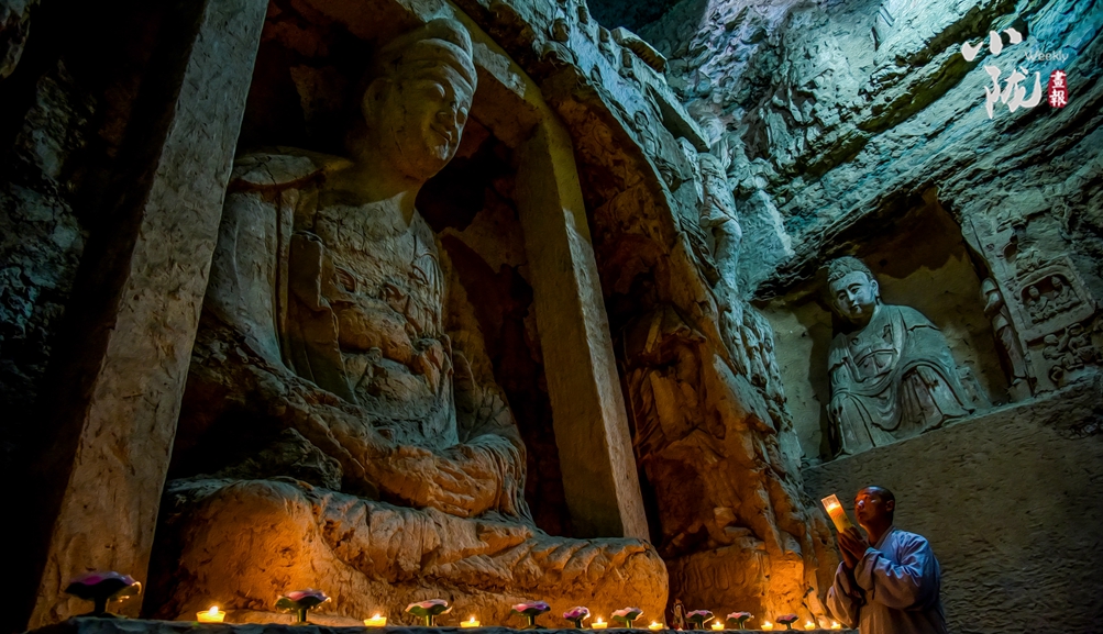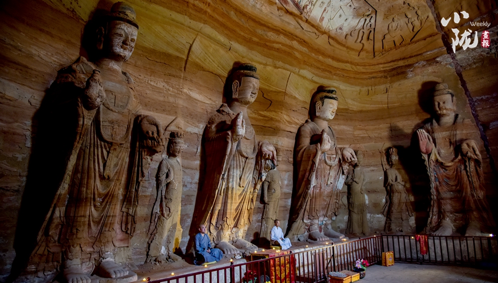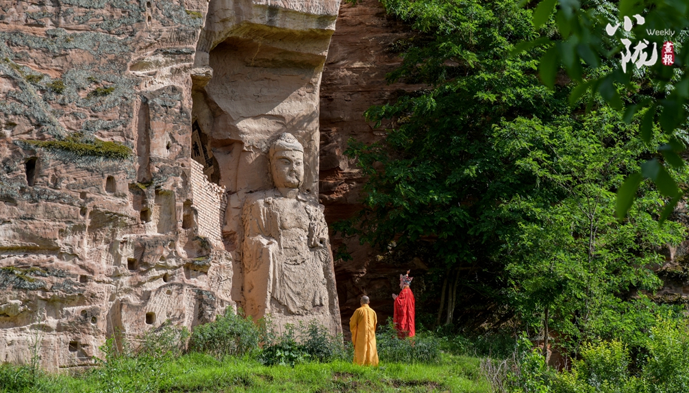 高聳的王母宮被涇河、汭河擁抱,回山上回屋里的磨崖浮雕,傳說是《山海經(jīng)》里西王母的最原始的形象。始鑿于北魏太和二年的王母宮石窟現(xiàn)存大小佛像200多尊,雕像、壁畫精美絕倫。