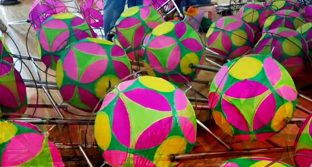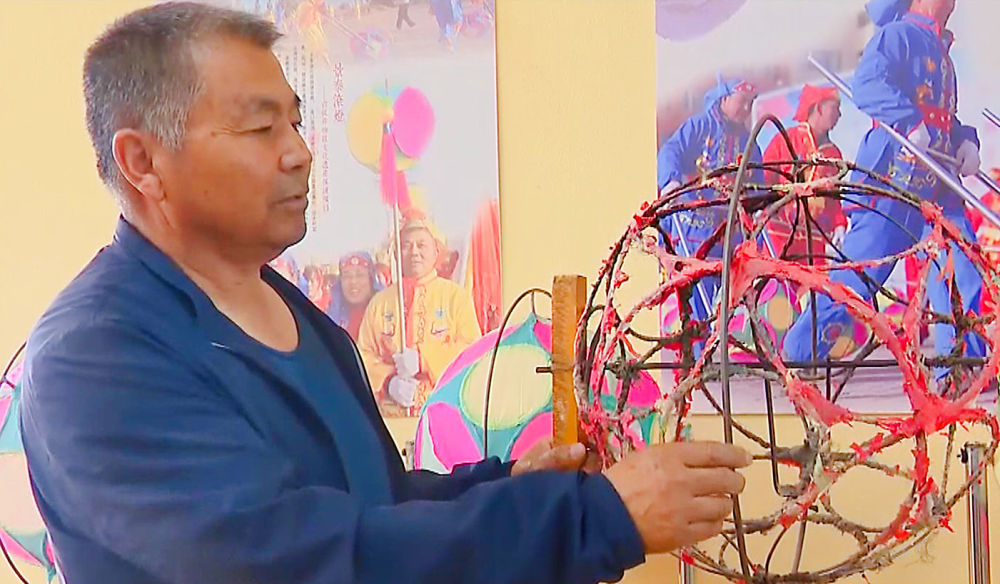 張安邦今年65歲,自其太祖輩起,代代都是技藝嫻熟的滾燈人,到他手里已經(jīng)是第三代了。明清時的滾燈,燈架、燈盤、轉(zhuǎn)軸都是木制的,花燈是用竹條或柳條編織,解放前改成了羅圈骨架,而現(xiàn)在經(jīng)過他改良的景泰滾燈,則是用高碳鋼絲制作而成。