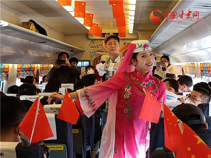 飛天與花兒相擁,甘肅與寧夏直通。蘭銀高鐵中蘭段開(kāi)通,也讓銀蘭高鐵全線(xiàn)貫通。為了慶祝這一歷史時(shí)刻,D9058次列車(chē)乘務(wù)組準(zhǔn)備了精彩的節(jié)日?!痘▋号c少年》展演寧夏風(fēng)情,遇見(jiàn)塞上花開(kāi)。敦煌樂(lè)舞,充滿(mǎn)甘肅元素講述飛天故事,巧妙的節(jié)目安排生動(dòng)地展示了甘肅、寧夏兩省區(qū)的文化元素,讓旅途不僅有一路風(fēng)光,更有一路風(fēng)情。
