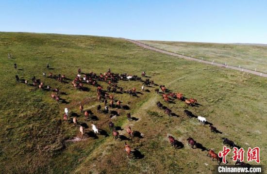圖為秋日祁連山下山丹馬場駿馬奔騰。(資料圖) 楊艷敏 攝