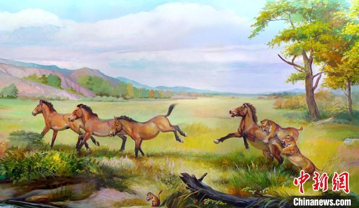 臨夏盆地早更新世真馬動(dòng)物群生態(tài)復(fù)原圖。 李榮山 繪制 攝