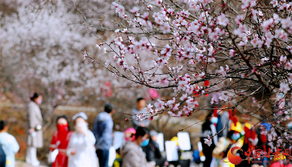 平?jīng)鍪嗅轻忌骄皡^(qū)的桃花競(jìng)相綻放