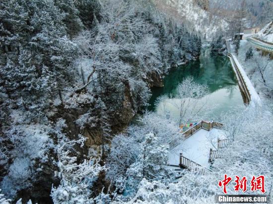航拍大峪溝雪景。