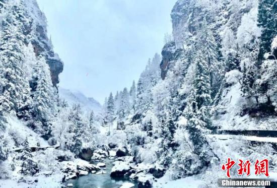 3月底,甘肅甘南藏族自治州卓尼縣大峪溝被一場春雪覆蓋,紛紛揚揚的雪花勾勒出一幅意境深遠的水墨丹青畫。