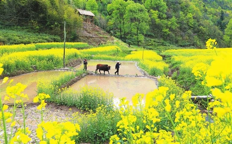 康縣陽(yáng)壩鎮(zhèn)前山村村民正在翻耕水田,準(zhǔn)備培育水稻秧苗。新甘肅·甘肅日?qǐng)?bào)通訊員 黃培軍