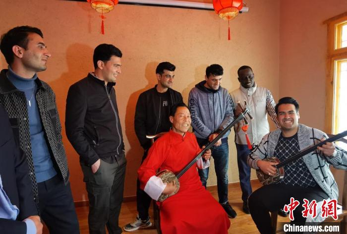 圖為5月9日,外籍游客體驗(yàn)三弦伴奏的“涼州賢孝”。 戴文昌 攝