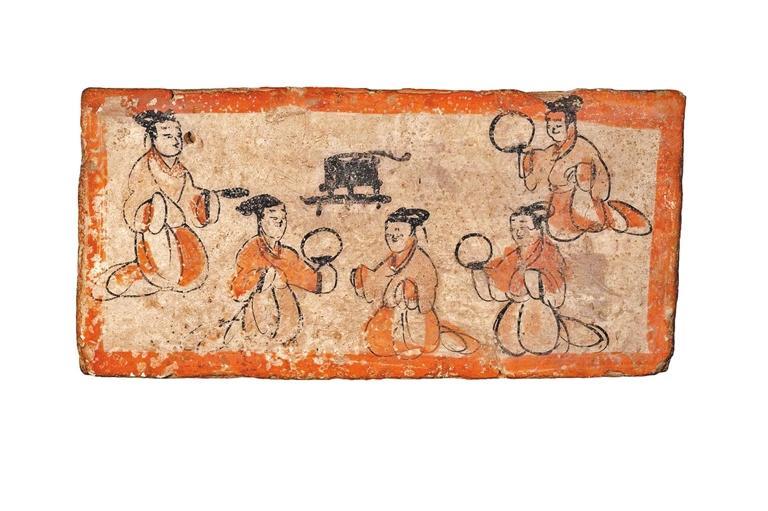 墓磚壁畫描述古人娛樂場景。