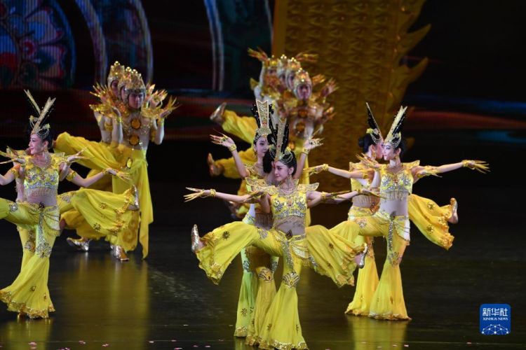 中國殘疾人藝術(shù)團(tuán)演員在敦煌大劇院表演大型情景音畫劇《千手千眼》(6月18日攝)。