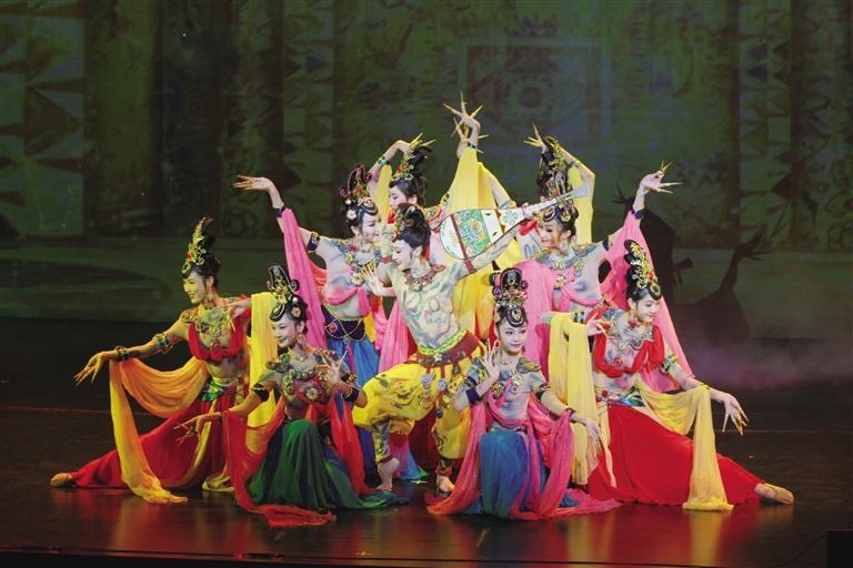 中國(guó)甘肅網(wǎng)9月6日訊 據(jù)蘭州日?qǐng)?bào)報(bào)道(首席記者 李超 攝)第六屆絲綢之路(敦煌)國(guó)際文化博覽會(huì)今日開(kāi)幕。9月5日晚8時(shí),作為本次博覽會(huì)迎賓演出,由中共甘肅省委宣傳部攜手中國(guó)東方演藝集團(tuán)、中央民族樂(lè)團(tuán)、蘭州大劇院等聯(lián)合出品的大型音樂(lè)劇《飛天》在敦煌大劇院上演?!讹w天》是中國(guó)著名音樂(lè)劇制作人李盾、作曲家三寶、劇作家關(guān)山歷時(shí)7年思索,共同編創(chuàng),由200多人組成講述敦煌的專業(yè)團(tuán)隊(duì),14首代表曲目輪番上演。在兩個(gè)小時(shí)的演出中,“莫高精神”在每一首曲目中得以詮釋。