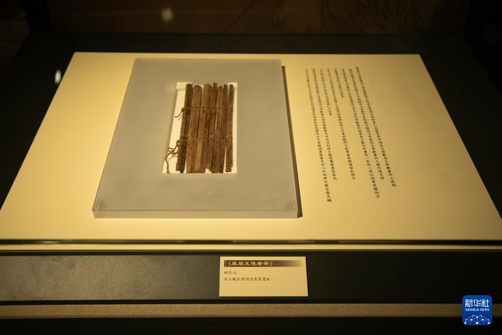 這是9月7日拍攝的甘肅簡(jiǎn)牘博物館展廳內(nèi)的“康居王使者冊(cè)”。新華社記者 郎兵兵 攝