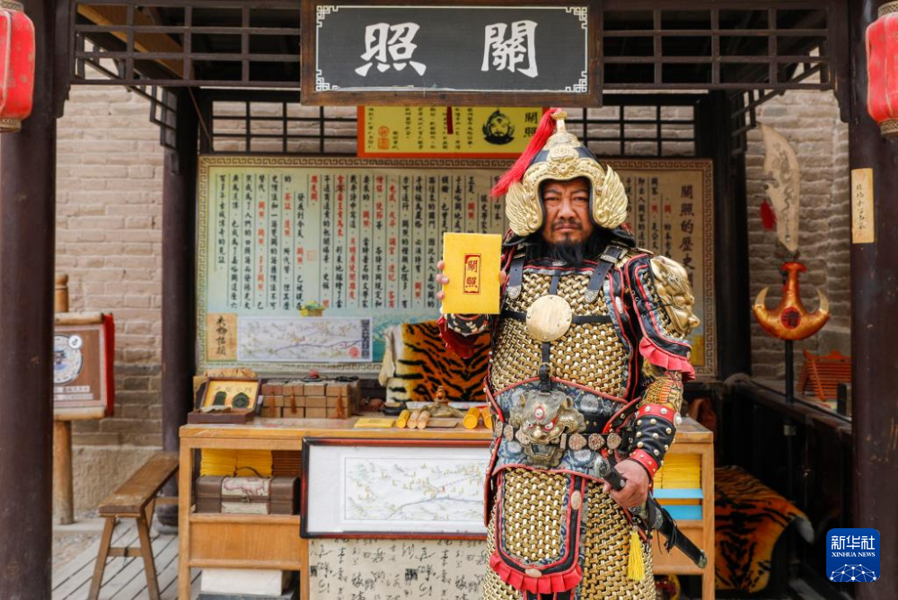 光頭絡(luò)腮胡的李森身披甲胄,在景區(qū)內(nèi)扮演明朝嘉峪關(guān)最高軍事長官,為游客簽發(fā)文創(chuàng)產(chǎn)品“關(guān)照”(通關(guān)文牒)。自2001年起,他在嘉峪關(guān)“守關(guān)”20多年,親眼見證了嘉峪關(guān)旅游業(yè)的發(fā)展變化。