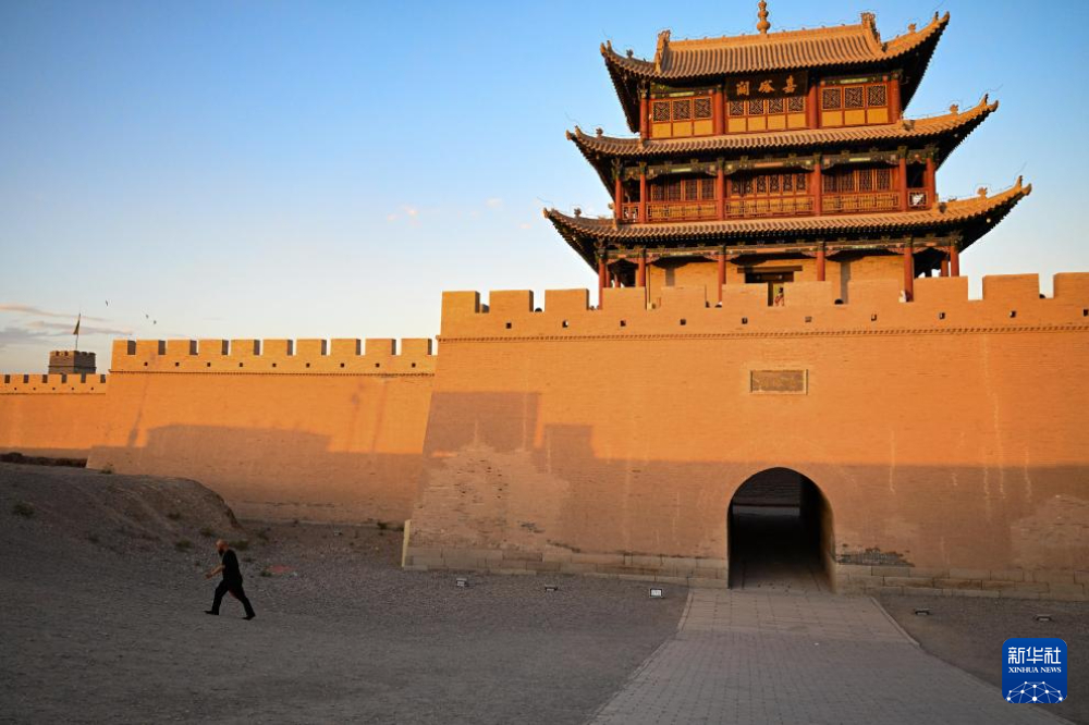 9月26日,李森在拍攝宣傳甘肅嘉峪關(guān)關(guān)城景區(qū)的短視頻,他在短視頻平臺已有40多萬粉絲。新華社記者 方欣 攝