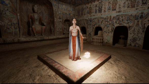 體驗(yàn)過(guò)后,游客還能在虛擬演播廳,實(shí)時(shí)拍攝一段真人與洞窟虛擬場(chǎng)景交互的視頻。無(wú)論身處何處,打開手機(jī)便能重溫這段“帶得走”的敦煌記憶。