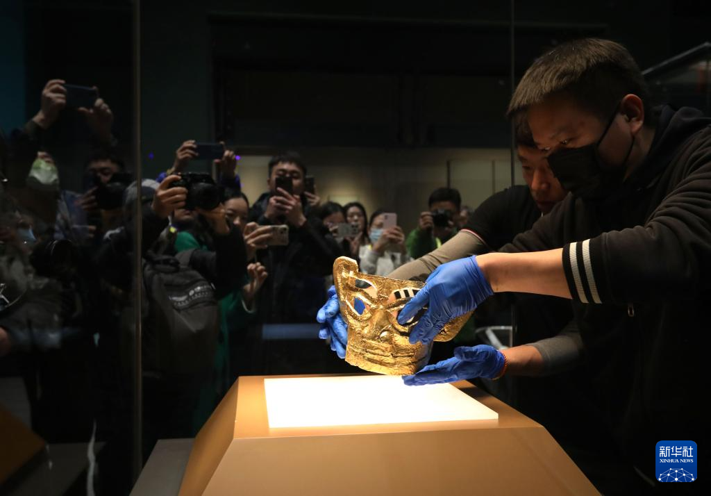 1月29日,金面具被移入展柜。