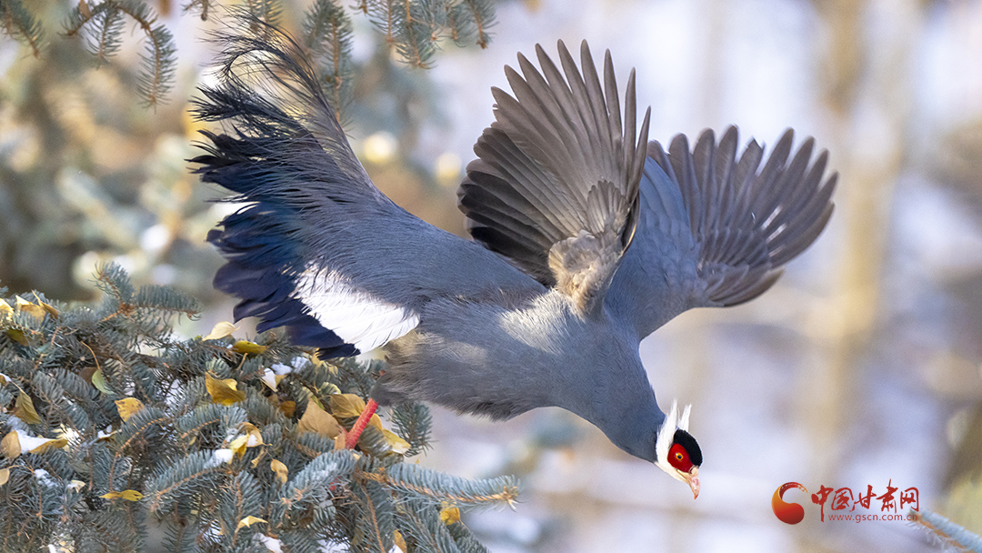 冬日里,藍(lán)馬雞成群飛落山腳覓食,藍(lán)羽丹頂行走在雪地格外搶眼。覓食時(shí),藍(lán)馬雞常用爪刨挖林中空地苔蘚和林緣草地,尋找掉落的云杉種子,刨食的過(guò)程會(huì)使土壤裸露出來(lái),便于云杉種子生根發(fā)芽,促進(jìn)云杉林天然更新。