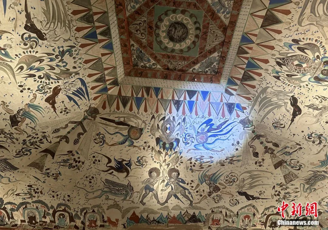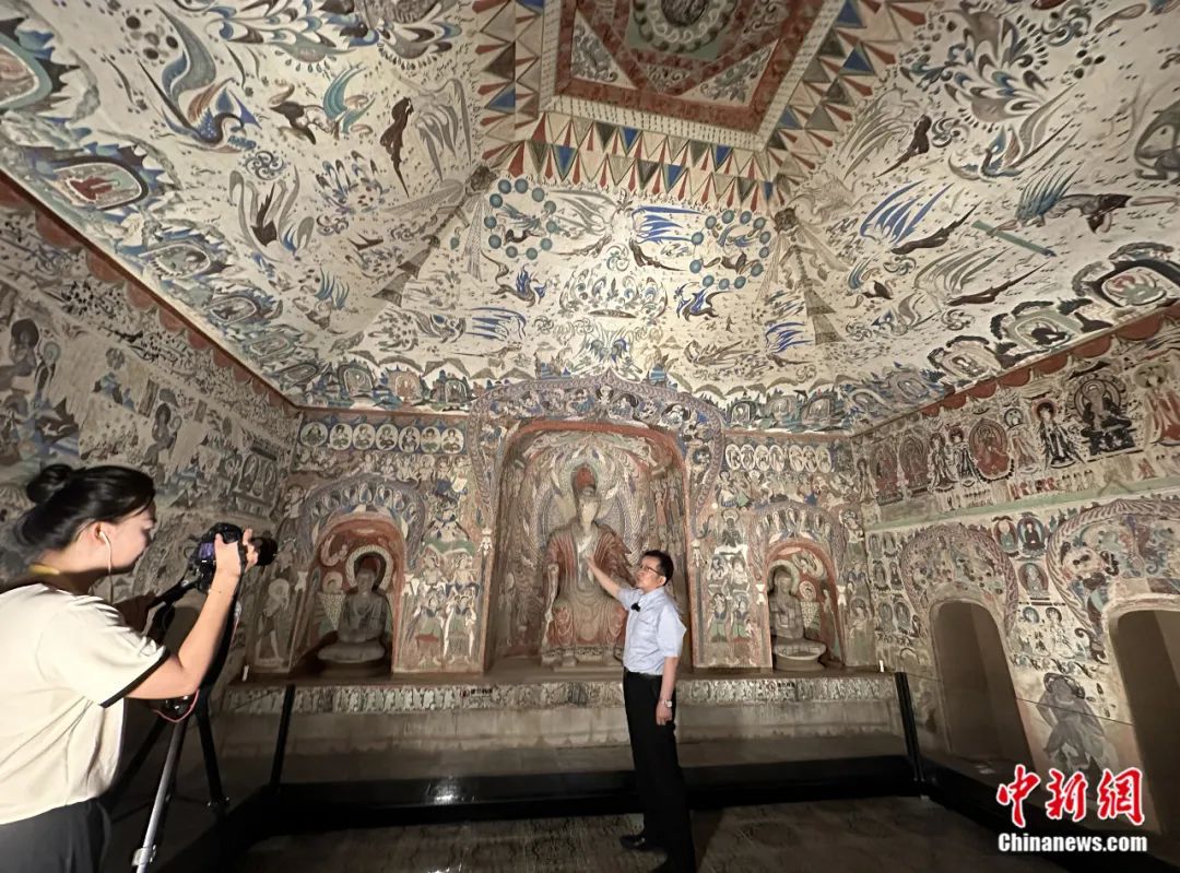2023年7月,敦煌研究院副院長張元林在敦煌莫高窟第285窟原大復(fù)制窟內(nèi),接受中新社“東西問”獨家專訪。丁思 攝