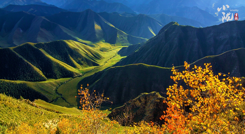 祁連主峰在藍(lán)天白云的映襯下顯得肅穆大氣。周?chē)悍辶_列、層巒疊嶂,高低延綿的山脈在陽(yáng)光的照耀下交相輝映,近處的群山被此起彼伏的林海包圍,像一道道五彩的波浪,郁郁蔥蔥,生機(jī)盎然。