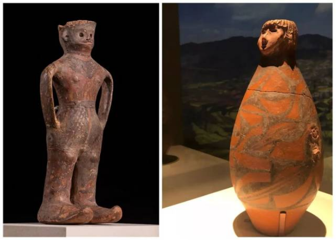 隴東有少女,而位于河西的玉門火燒溝同樣出土了一件距今3700多年的人形彩陶罐,被人們稱做“河西少年”。在2019年“少女”與“少年”這一對(duì)“金童玉女”就已經(jīng)邂逅了,2019年中國(guó)國(guó)家博物館展出“絲路孔道——甘肅文物精華展”時(shí),在展覽序廳門口了生了這樣一場(chǎng)友愛(ài)的“接力”。隴東大地灣的可愛(ài)“少女”——人頭形器口彩陶瓶說(shuō):“出來(lái)有一陣子了,在京城過(guò)了端午節(jié),該回家了!在京的時(shí)間雖短,但我很高興作為代表在國(guó)家博物館迎接全國(guó)、全世界的觀眾,希望還有機(jī)會(huì)可以再來(lái)!”。河西火燒溝的酷“少年”——人形彩陶罐說(shuō):“您回家了,我接替您的工作,在展覽的大門口,繼續(xù)帶領(lǐng)觀眾領(lǐng)略多彩厚重的甘肅歷史文明!”
