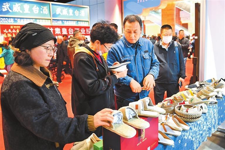 文藝表演結(jié)束后,市民及游客紛紛走進(jìn)天水市會(huì)展中心展區(qū)內(nèi)設(shè)立的特色文旅商品展銷(xiāo)區(qū),選購(gòu)心儀的特色產(chǎn)品,一飽“口福、眼福、耳福”。