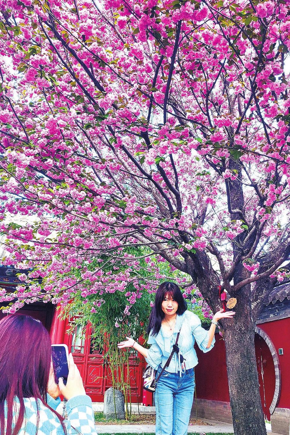 ▲蘭州白塔山下,年輕人著漢服賞花春游成為一道春日新景。