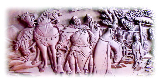 因著榜沙河的滋潤,“民武”木雕擺件大多采用本地質(zhì)地細(xì)密堅(jiān)韌、不易變形的梨木,所刻作品溫潤而不浮躁,沉穩(wěn)而不輕浮。最具特色的是,在題材選取上極富傳統(tǒng)文人氣息,尤其是施彩擺件,具有較高的藝術(shù)水準(zhǔn)。這些千姿百態(tài)的圖案,將生活場(chǎng)景和神話故事有機(jī)融合在一起,高大悠遠(yuǎn)、古拙秀雅,達(dá)到了“變形不失真,夸張亦傳神”的藝術(shù)境界。
