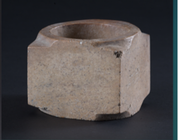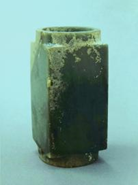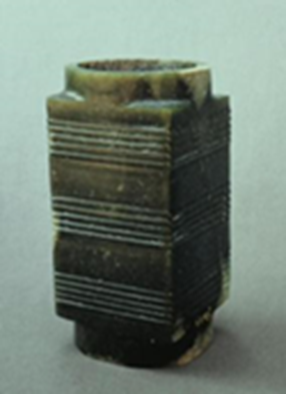 玉琮(編號(hào)總0128:2)高4.6~5.2厘米,外方邊長(zhǎng)5.5~5.7厘米,內(nèi)徑大端5.4厘米,小端4.2厘米,形制一端較規(guī)整,另一端四角上部不規(guī)整。