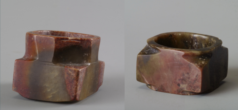 根據(jù)以上兩件玉琮形狀和材質(zhì)顏色比對(duì),它們?cè)瓰橐患^大的玉琮被切割成兩件。