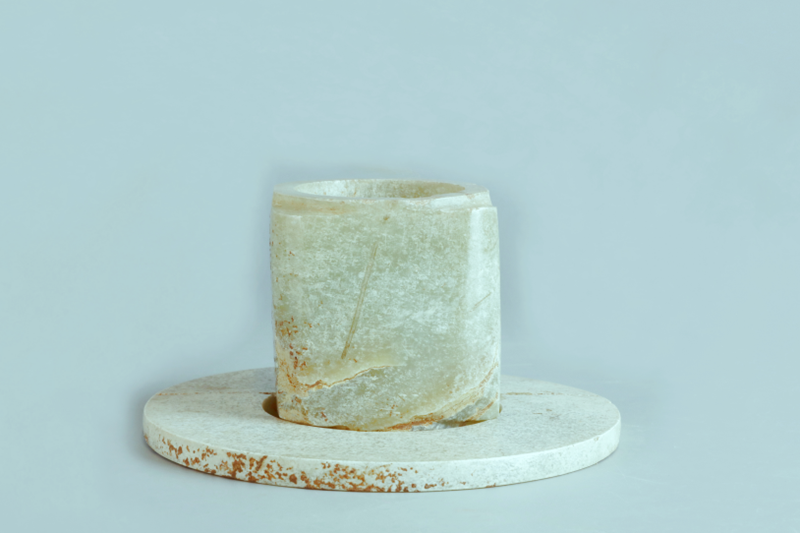 這兩件玉器均為青玉,玉璧表面略呈乳白色;玉琮略帶黃色??傮w來(lái)看,材質(zhì)還是比較接近,極有可能也是同一玉材,分別琢出了玉璧和玉琮。對(duì)這兩件玉器的時(shí)代,王桂枝和高次若兩位研究人員均認(rèn)為是西周。鄧淑蘋(píng)女士很早指出這兩件玉器是齊家文化的玉器。2022年她在為陜西歷史博物館舉辦的《玉韞·九州:中國(guó)早期文明間的碰撞與聚合》展覽圖錄撰寫(xiě)的一篇《曙光中的天人對(duì)話—中國(guó)玉禮制的史前探源》長(zhǎng)文中認(rèn)為,這兩件玉器屬先齊家系的客省莊文化器物,這兩件玉器均收藏在寶雞青銅器博物院。去年我委托寶雞青銅器博物院王竑女士將兩件器物套疊在一起拍攝了幾張照片,提供學(xué)術(shù)界研究。這件玉琮兩端射部較短,在方體一個(gè)面部有一條斜向切割線,這條切割線有什么用途?或是無(wú)心為之,或是具有我們并不清楚的含義。