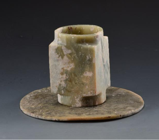 胡家底遺址發(fā)現(xiàn)的三對(duì)玉璧和玉琮,每對(duì)材質(zhì)基本相同,玉璧中孔可套疊在琮之射端,可見(jiàn)當(dāng)年有可能套疊使用以祭祀天地。