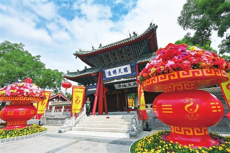 多年來(lái),天水市圍繞華夏文明傳承創(chuàng)新區(qū)和伏羲始祖文化傳承創(chuàng)新區(qū)建設(shè),不斷加強(qiáng)歷史文化遺產(chǎn)保護(hù),伏羲廟被列入全國(guó)重點(diǎn)文物保護(hù)單位名單,圪垯川遺址入選2021年“考古中國(guó)”重大項(xiàng)目,“太昊伏羲祭典”被列入首批國(guó)家級(jí)非物質(zhì)文化遺產(chǎn)保護(hù)名錄,“秦安女?huà)z祭典”被列入第三批國(guó)家級(jí)非物質(zhì)文化遺產(chǎn)代表性項(xiàng)目名錄。圍繞1家5A級(jí)景區(qū)、7家4A級(jí)景區(qū)、18家3A級(jí)景區(qū),打造羲皇故里尋根祭祖游等7條特色線路滿(mǎn)足不同游客需求。圍繞伏羲文化題材,創(chuàng)作開(kāi)發(fā)800余種文創(chuàng)產(chǎn)品和旅游商品,注冊(cè)113個(gè)伏羲文化相關(guān)商標(biāo)、16項(xiàng)相關(guān)專(zhuān)利。先后創(chuàng)作推出《天河熱土》《說(shuō)伏羲》《天水千古秀》《夢(mèng)回大地灣》《伏羲頌》《祖脈天水》《伏羲創(chuàng)世》等一大批優(yōu)秀作品。全市文藝家共獲得國(guó)家級(jí)文藝創(chuàng)作獎(jiǎng)項(xiàng)192個(gè)、省級(jí)重點(diǎn)文藝創(chuàng)作獎(jiǎng)項(xiàng)296個(gè)。伏羲文化已成為甘肅省獨(dú)具特色的重要文化品牌,為促進(jìn)文化和旅游深度融合發(fā)揮了重要作用。