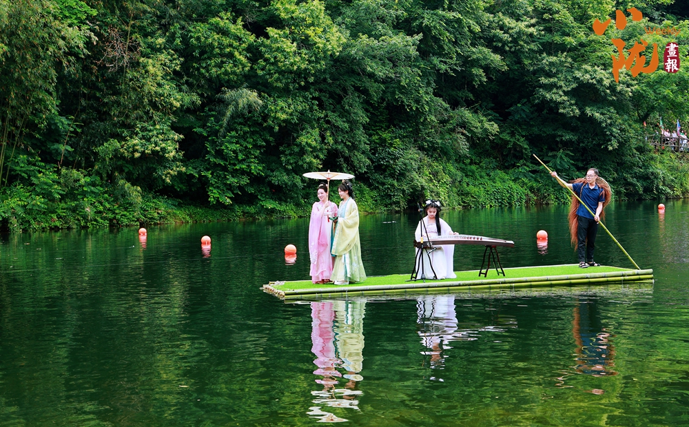 天鵝湖上一葉竹筏緩緩而來,以竹筏為舞臺(tái),一系列精彩紛呈的水上文藝表演,演繹出天鵝湖的浪漫與靈動(dòng)。