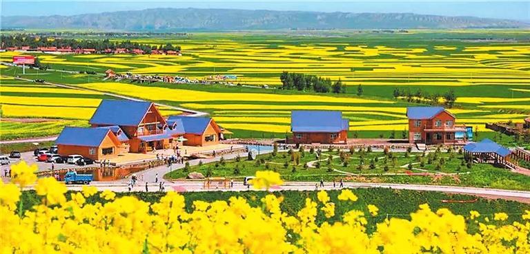 眺望遠(yuǎn)處,一座座大山傲然聳立在半空中,和云朵擦肩而過(guò),山上綠樹(shù)成蔭,空氣十分清新。最美的還是田野,爬上山頂往下看,除了空中飛行的鳥(niǎo)兒,一眼望不到邊的是綠油油的田野。227國(guó)道將村莊分割為東、西兩塊大小不等的地域,金黃的千畝油菜花海,夾雜著大麥、馬鈴薯的碧綠條塊,環(huán)繞在村莊四周。人工栽植的云杉松柏、紫葉矮櫻等苗木高低起伏地相擁在家家戶(hù)戶(hù)的房前屋后,坐落在油菜花海和綠樹(shù)環(huán)繞中的村莊與小康農(nóng)舍,恰似航船一樣在金黃的花海中漂浮升沉著,煞是美麗。正是這宜業(yè)宜居、可憩可游、美麗愜意的鄉(xiāng)村生活環(huán)境,讓炒面莊贏(yíng)得“美麗鄉(xiāng)村”示范村和“環(huán)境整潔村”的美譽(yù)。