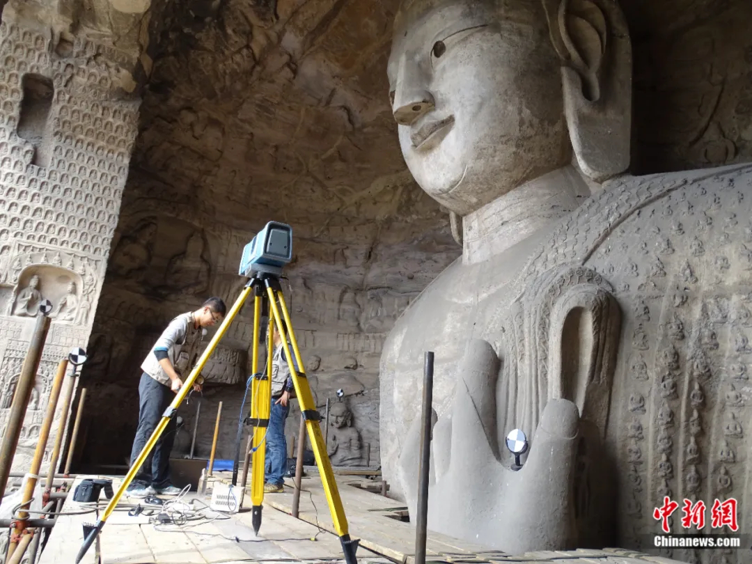 云岡研究院工作人員進(jìn)行數(shù)字化信息采集。云岡研究院供圖