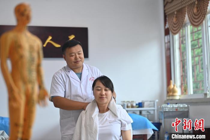 7月16日,甘肅省平?jīng)鍪徐`臺(tái)縣皇甫謐針灸康養(yǎng)館內(nèi),工作人員對(duì)患者進(jìn)行推拿治療。2006年,靈臺(tái)皇甫謐針灸術(shù)入選第一批甘肅省非物質(zhì)文化遺產(chǎn)名錄。靈臺(tái)作為皇甫謐故里,當(dāng)?shù)孛癖姺浅UJ(rèn)可中醫(yī)康養(yǎng),針灸、拔火罐、推拿、葫蘆灸、火龍灸(督脈灸)等中醫(yī)特色療法受到了很多人的青睞,當(dāng)?shù)毓俜揭餐ㄟ^舉辦大型節(jié)會(huì)等助推中醫(yī)康養(yǎng)產(chǎn)業(yè)發(fā)展。 皇甫謐是針灸醫(yī)學(xué)鼻祖,其《針灸甲乙經(jīng)》已在多個(gè)國家被廣泛傳播應(yīng)用。  中新社記者 李亞龍 攝