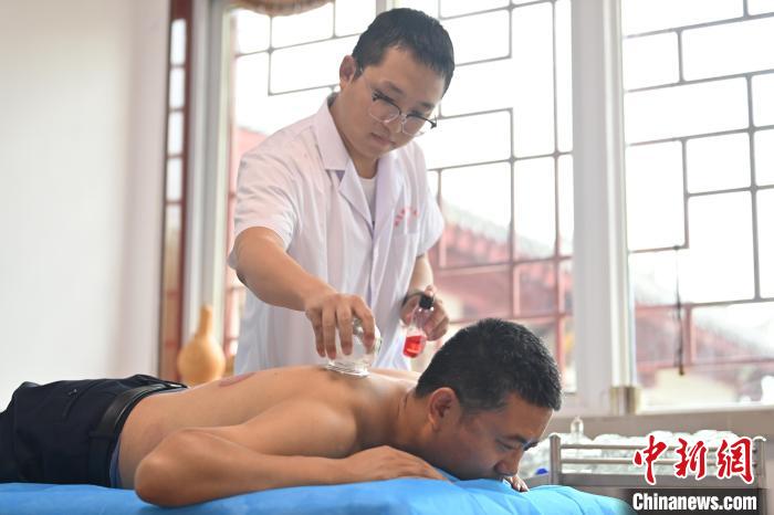 7月16日,甘肅省平?jīng)鍪徐`臺(tái)縣皇甫謐針灸康養(yǎng)館內(nèi),工作人員對(duì)患者進(jìn)行拔火罐。2006年,靈臺(tái)皇甫謐針灸術(shù)入選第一批甘肅省非物質(zhì)文化遺產(chǎn)名錄。靈臺(tái)作為皇甫謐故里,當(dāng)?shù)孛癖姺浅UJ(rèn)可中醫(yī)康養(yǎng),針灸、拔火罐、推拿、葫蘆灸、火龍灸(督脈灸)等中醫(yī)特色療法受到了很多人的青睞,當(dāng)?shù)毓俜揭餐ㄟ^舉辦大型節(jié)會(huì)等助推中醫(yī)康養(yǎng)產(chǎn)業(yè)發(fā)展。 皇甫謐是針灸醫(yī)學(xué)鼻祖,其《針灸甲乙經(jīng)》已在多個(gè)國家被廣泛傳播應(yīng)用。  中新社記者 李亞龍 攝