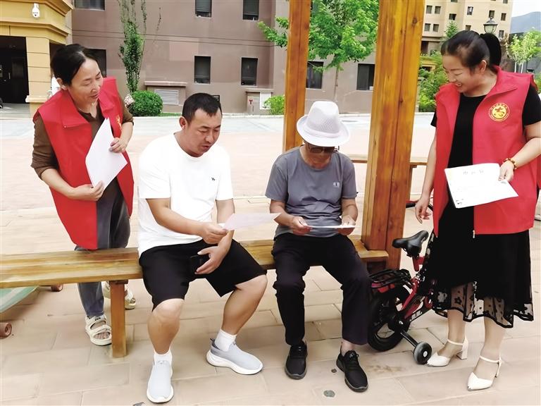 志愿者給小區(qū)居民發(fā)放《中元節(jié)文明祭祀倡議書》受訪單位供圖